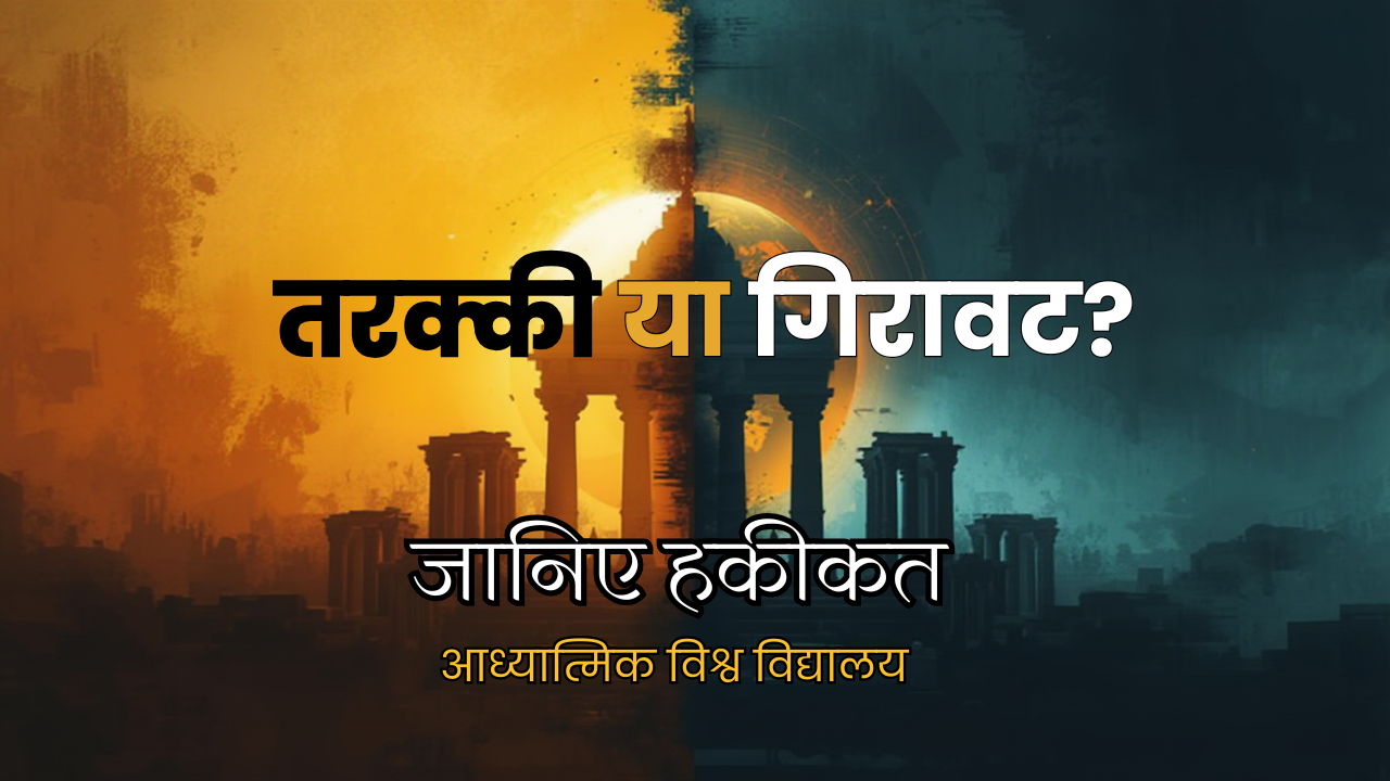 कहते हैं समाज ने तरक्की की, पर बँट गईं जातियाँ। कहते हैं आस्था ने तरक्की की, पर हो गया धर्मों का बँटवारा। विज्ञान आगे बढ़ा तो बनी विस्फोटक शक्ति, और शिक्षा प्रणाली उन्नत हुई तो बढ़ गई बेरोजगारी। सुरक्षा के लिए पुलिस बनी तो अपराध बढ़ गए, और महिलाओं को समान दर्जा मिला तो उनका शोषण भी बढ़ गया। चिकित्सा पद्धति में क्रांति आई तो दवाइयों के दुष्प्रभावों की एक लंबी सूची तैयार हो गई। यह सब देखकर मन में एक गहरा सवाल उठता है: यह तरक्की है या गिरावट? उत्थान है या पतन?